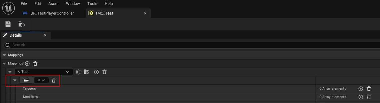 - 直接在蓝图中敲 IA_Test 就能把触发事件搞出来