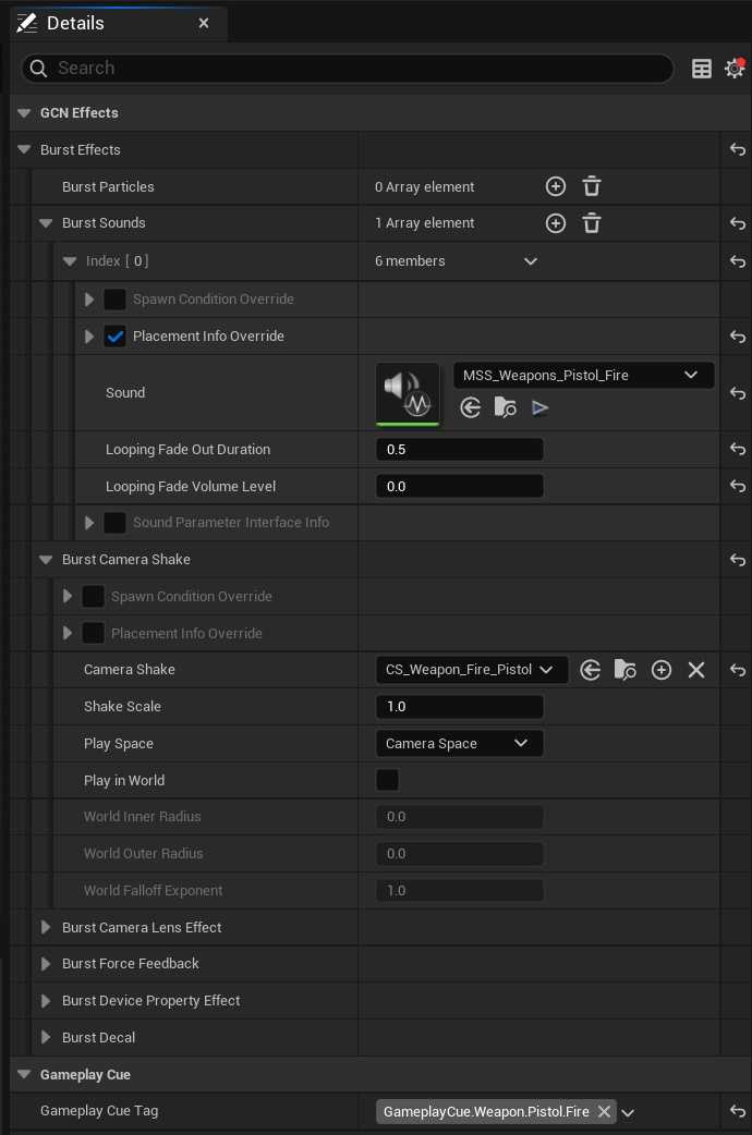 GameplayCue.Weapon.Pistol.Fire 是开火的弹道,击中特效,声音