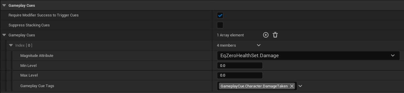 受击反馈: 通过属性变化回调/消息系统触发(不用 GE 上的 Cue)