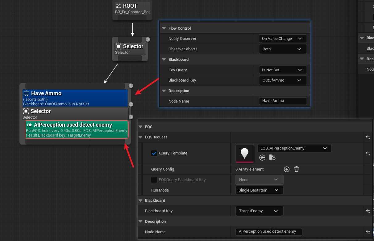 【Have Ammo 的条件False,其中 Notify Observer 的 OnValue Change 和 Both 会让后面的都失败。所以一直卡root。所以还给继续写】
