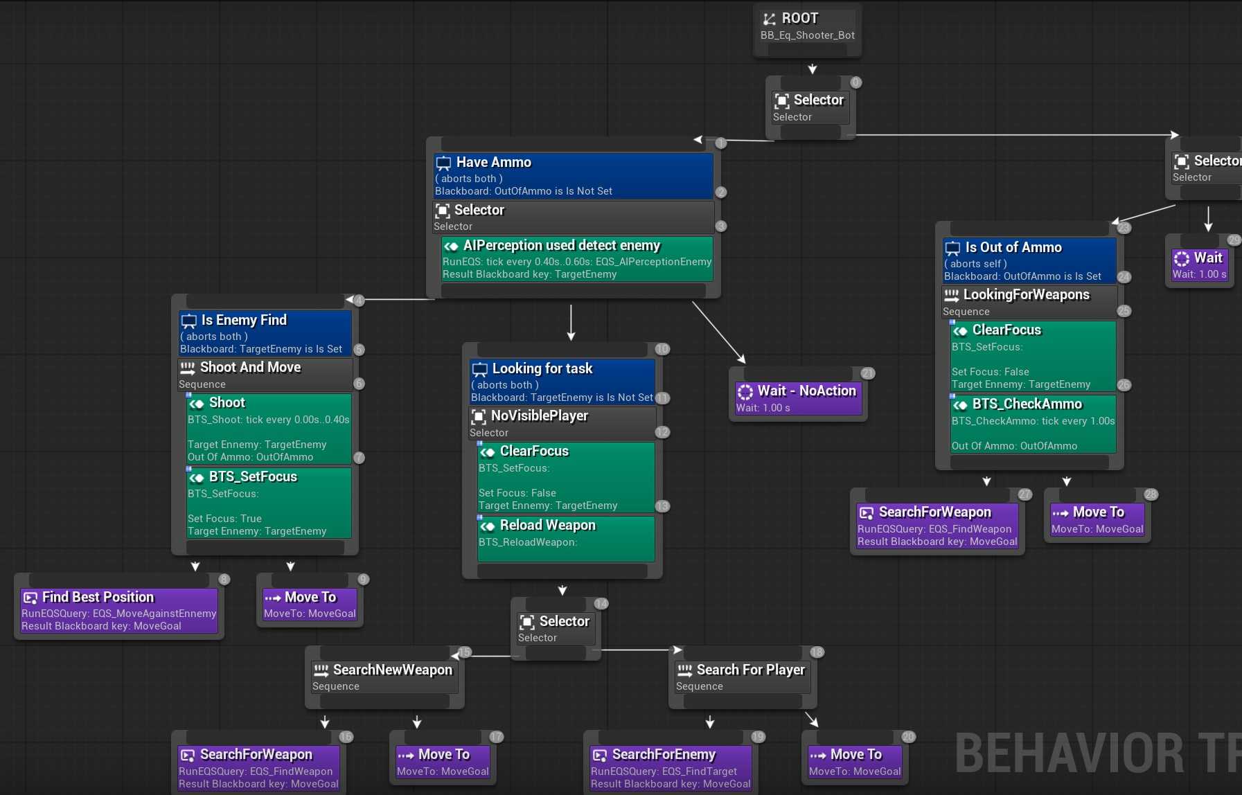 -> 找到了 【攻击】【Set Focus】【BOT寻找可看到玩家的最远的点,走过去】