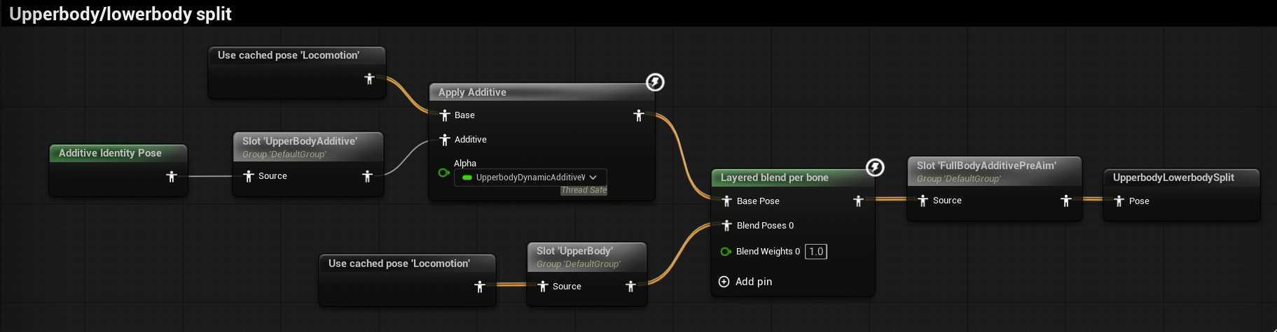 Base动画蓝图来写具体的状态过度。如IDLE,Cycle,Jump等。但是具体的状态不写系统,用动画层接口